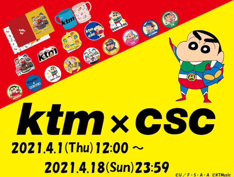 臼井儀人原作によるアニメ「クレヨンしんちゃん」とケツメイシのコラボグッズが、明日4月1日12時から18日23時59分までの期間限定で受注販売される。