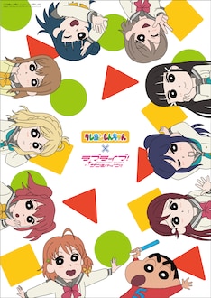 臼井儀人原作によるアニメ「クレヨンしんちゃん」と、スクールアイドルプロジェクト「ラブライブ!サンシャイン!!」のコラボグッズが、6月25日よりバンダイナムコアーツ公式オンラインショップ・A-on STOREほかで販売される。