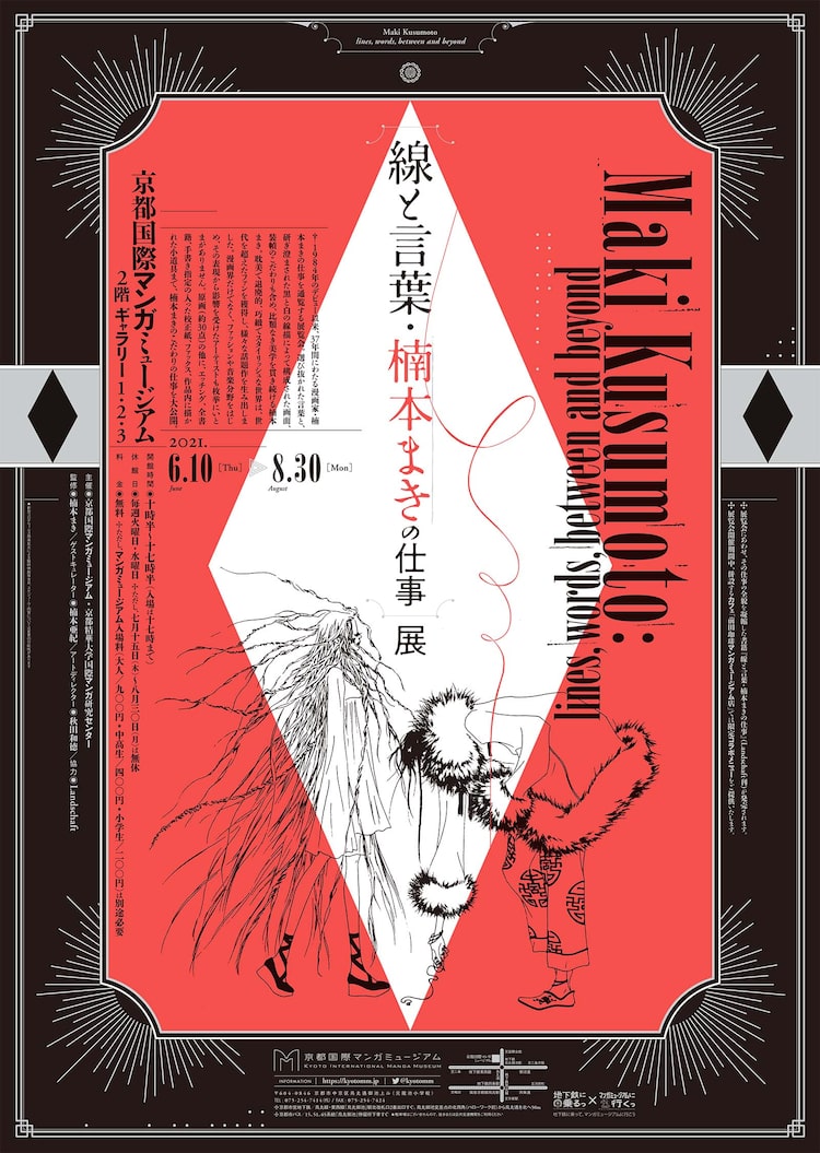 また展覧会にあわせ、6月には書籍「線と言葉・楠本まきの仕事」を発売。楠本のインタビューや編集者・デザイナーとの対談、京都国際マンガミュージアム館長・荒俣宏ほかによる寄稿などが収録される。