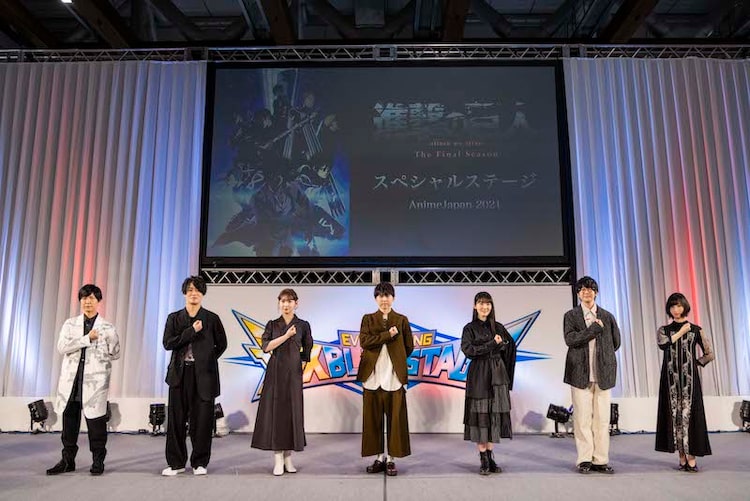 諫山創原作によるTVアニメ「『進撃の巨人』The Final Season」のステージイベントが、去る3月28日にオンラインで開催された「AnimeJapan 2021」内にて行われ、エレン役の梶裕貴、ミカサ役の石川由依、アルミン役の井上麻里奈、リヴァイ役の神谷浩史、ライナー役の細谷佳正、ファルコ役の花江夏樹、ガビ役の佐倉綾音が登壇した。