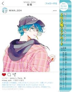 「顔だけじゃ好きになりません」のSNS風クリアカードは、実際の風景に透かして撮影することで、SNSに投稿したような奏人の写真を撮れる綴じ込み付録。イラストは安斎の描き下ろしだ。SNSが作中の重要な鍵となる「顔だけじゃ好きになりません」にぴったりの付録に仕上がっているので、美和総の公式アカウントの“中の人”になりきって撮影を楽しんでみては。