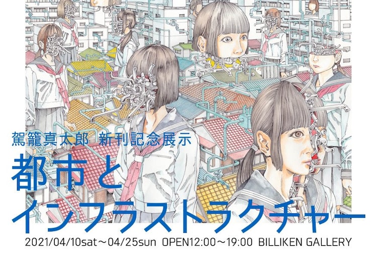 駕籠真太郎の新作「駕籠真太郎作品集・都市とインフラストラクチャー」が、4月28日に青林工藝舎から発売。これを記念した展示企画が、本日4月10日から25日にかけて東京・ビリケンギャラリーで開催される。