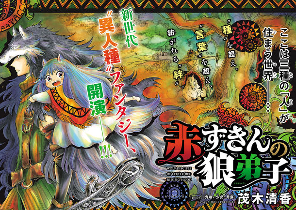 「pupa」「鬼喰い少女と月梟」などで知られる茂木の「赤ずきんの狼弟子」は、獣人、人間、狩人の3種族が生きる世界を舞台に、狩人の青年と人狼の少女を描く異人種ファンタジー。圧倒的な強さを誇る狩人・ウルは、“赤ずきん”と呼ばれ、獣人や人間たちから恐れられていた。獣人を狩って生活をするウルの住処に、ある日獣人の一種・人狼の少女マニが迷い込んでくる。仕方なくマニの面倒を見るウルだったが……。