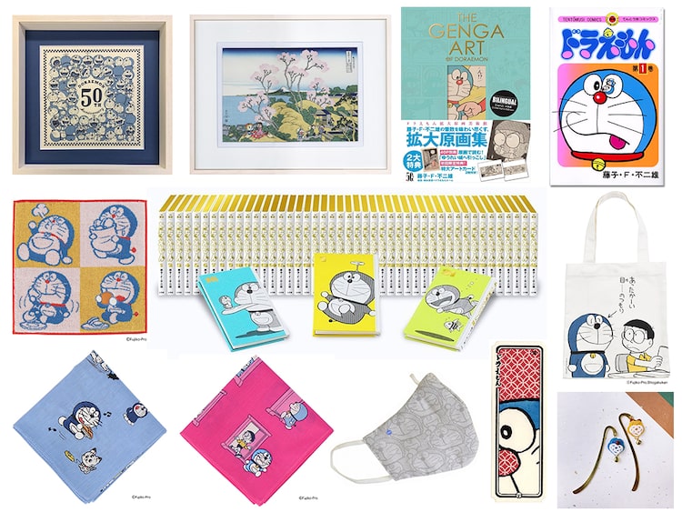 2017年のオープン以来「ドラえもん」1巻を欠かさず展開するなど、継続して「ドラえもん」を薦めてきた銀座蔦屋書店。“アートとしてドラえもんを楽しむ”をテーマに展開される「ドラえもんオンラインフェア2021」では、4月7日に発売された「THE GENGA ART OF DORAEMON ドラえもん拡大原画美術館」、2020年に発売された「100年ドラえもん」、50周年を記念し制作されたドラえもんの浮世絵版画、ハンカチやマスクなどのアイテムを紹介している。