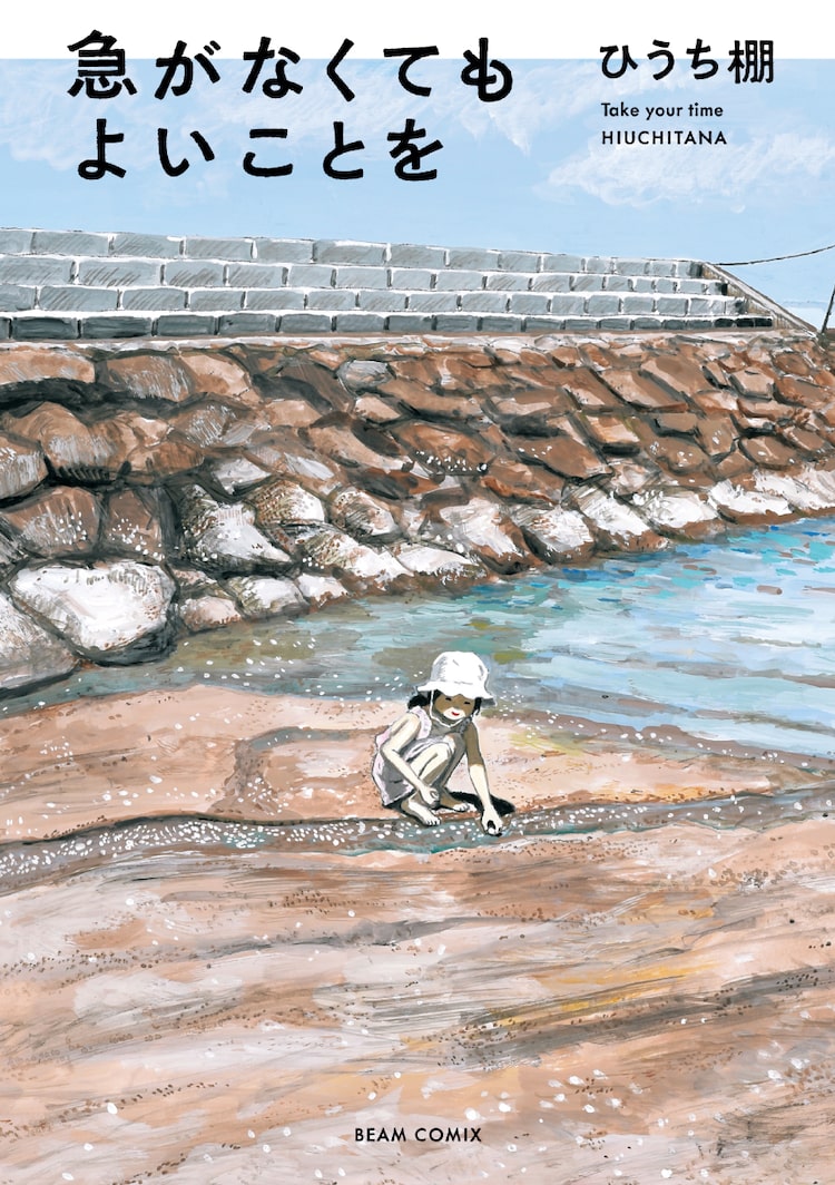 同書は著者のひうち棚が、2009年から2021年にかけて綴った随筆マンガをまとめた1冊。表題作の「急がなくてもよいことを」では、幼い我が子との散歩道での些細なやり取りを切り取っている。そのほか子供の頃に友達と2人だけで映画を観に行った思い出、給食を食べるスピードが遅かった同級生のこと、久しぶりに帰った実家での母親とのやり取り、結婚1年目に夫婦で見た景色のこと、家族で海に行った日のことなど、古いアルバムのページをめくるように楽しめる18編が収められている。