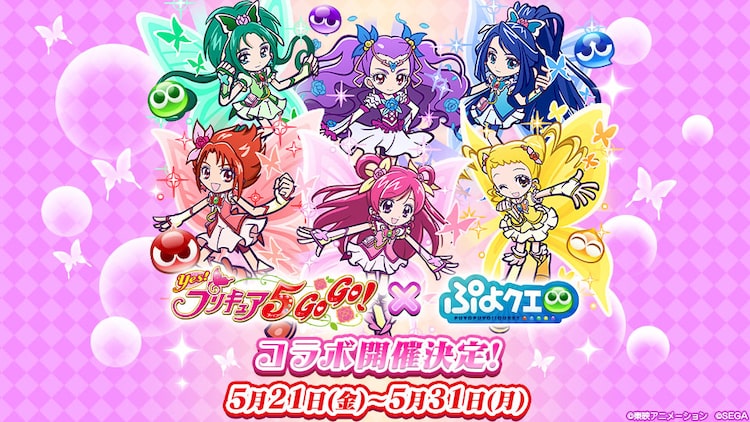 アニメ「Yes!プリキュア5GoGo!」とのコラボイベントが、セガのスマートフォン向けパズルRPG「ぷよぷよ!!クエスト」で5月21日より開催される。