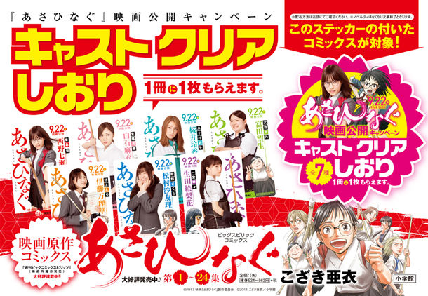 こざき亜衣「あさひなぐ」の最新24巻が本日9月12日に発売。9月22日より同作を原作とした実写映画が公開されることを記念し、キャストのクリアしおりがもらえる書店キャンペーンが展開されている。