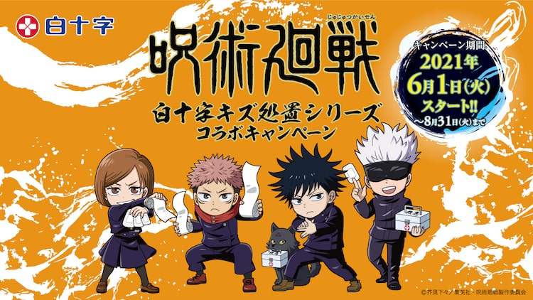 芥見下々原作によるTVアニメ「呪術廻戦」と、白十字「キズ処置シリーズ」によるコラボキャンペーンが、6月1日から8月31日まで実施される。