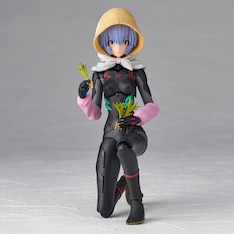 「EV-022 アヤナミレイ(仮称) 第3村Ver.」はアヤナミレイ(仮称)の農作業着姿を初めて立体化したフィギュア。プラグスーツ姿にも換装できる仕様だ。そのほかオプションパーツとして農作業シーンを再現できる「稲」「ジャガイモ」「ザル」や、さらに作中に登場する音楽プレイヤーを模した「S-DAT」が付属する。