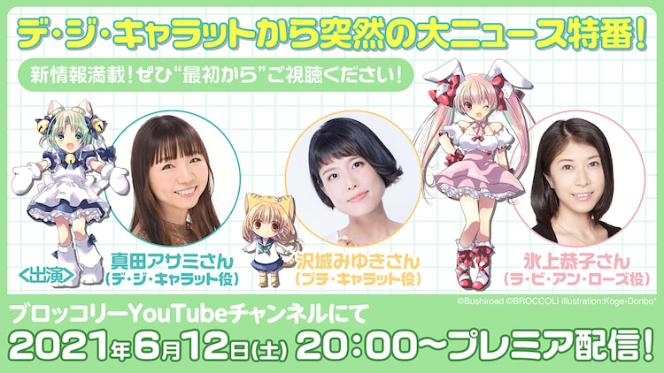 アニメ「Di Gi Charat」のキャストが出演する“突然の大ニュース特番”が、YouTubeのブロッコリー公式チャンネルにて6月12日20時より配信される。