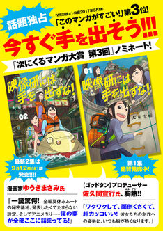 大童の初連載作となる「映像研には手を出すな!」は、女子高生3人組がアニメ制作に挑む青春冒険譚。3月度の「このマンガがすごい!WEB」のオトコ編にて第3位にランクインし、「第3回 次にくるマンガ大賞」にもノミネートされた作品だ。第2巻では浅草みどり、金森さやか、水崎ツバメの3人組のもとへ、ロボット研究部からアニメ制作の依頼が舞い込む。彼女たちが文化祭のPRのため、巨大ロボットアニメの制作に挑戦する姿が描かれた。小学館の公式サイトでは、10月1日までの期間、第1話から第3話までの試し読みを公開中だ。