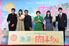 イベントにはさんま、肉子ちゃん役の大竹しのぶ、キクコ役のCocomi、二宮役の花江夏樹、監督の渡辺歩が登壇。最初に一言挨拶を求められると、さんまは「5年越しに『漁港の肉子ちゃん』が完成しました。たぶん100点をいただいてもいい作品になっています」と自信を覗かせる。大竹は「なんで(肉子ちゃん役が)私なんだろうと最初は思ってたんですけど、原作も素敵で、出来上がった映画が本当に本当にあったかくて。『あ、こんないい映画を作る人だったんだ』ってびっくりしました(笑)」と冗談を飛ばした。