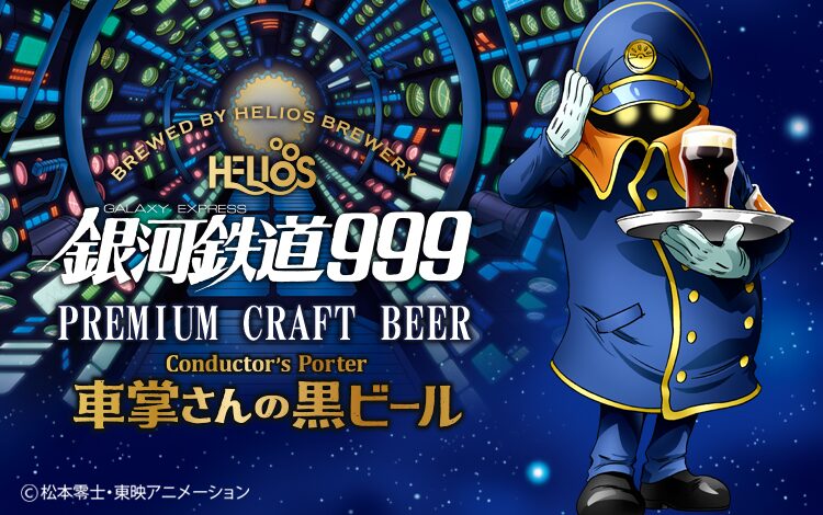 「プレミアムクラフトビール銀河鉄道999 車掌さんの黒ビール」のパッケージは、東映アニメーションによる描き下ろし。「銀河鉄道999」に登場する車掌さんが、トレイに乗せた黒ビールを運ぶイラストになっている。350ml缶での販売になり、価格は税込358円。なおヘリオス酒造は過去にも「銀河鉄道999」を題材にしたビールとして「メーテルのヴァイツェン」を発売している。