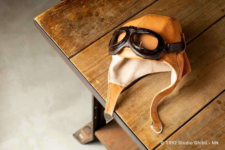 ラインナップされたのは、ポルコ・ロッソが劇中で被っている帽子を忠実に再現した、フライトキャップと中折れハットの2種。フライトキャップの本体とゴーグルには、姫路産の上質な牛革が使われ、ひとつずつ手縫いで仕上げられている。中折れハットには、きめ細かいメリノウールのフェルトを使用。高さのあるクラシックな帽子に仕立てられた。ともに裏地には、ポルコと彼の愛機・サボイアS.21のイラストがプリントされている。