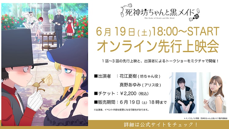 「死神坊ちゃんと黒メイド」オンライン先行上映会開催、花江夏樹&真野あゆみ生出演