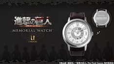 「【進撃の巨人】メモリアルウォッチ」は、調査兵団のエンブレム、各調査兵団員のアイコンや名前を文字盤の1時から12時までの位置にデザインした腕時計。秒針に超硬質ブレードのシルエット、文字盤の中心に3枚の壁などが配され、「進撃の巨人」の世界観がさり気なく表現された。