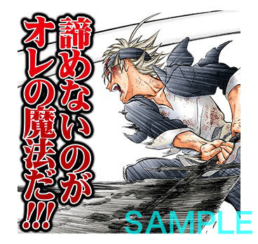 週刊少年ジャンプ(集英社)の創刊50周年を記念した「LINE×週刊少年ジャンプ」キャンペーンの第6弾として配信された同スタンプ。「諦めないのがオレの魔法だ!!!」と剣を振るうアスタや「限界を超えろ」と発破をかけるヤミなど「黒の暴牛」メンバーをはじめ、ユノや魔法帝ユリウスなど計40種類のスタンプが用意されている。購入には240円または100コインが必要。