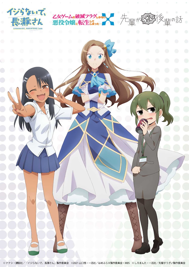 アニメ「乙女ゲームの破滅フラグしかない悪役令嬢に転生してしまった…X」、アニメ「イジらないで、長瀞さん」、アニメ「先輩がうざい後輩の話」のコラボ4コママンガ第2弾が公開された。