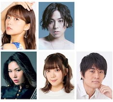 上段左から三森すずこ、蒼井翔太、下段左からRaychell、伊藤彩沙、小林親弘。