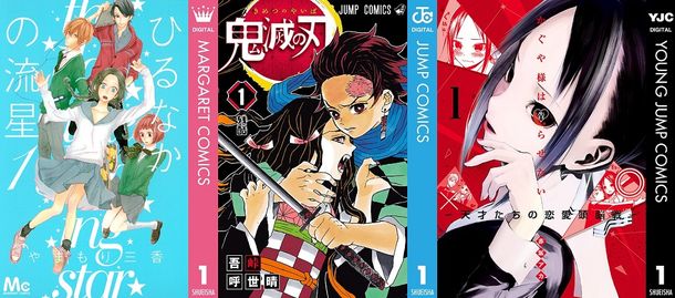 「鬼滅の刃」、「ひるなかの流星」、 「かぐや様は告らせたい~天才たちの恋愛頭脳戦~」ほか
