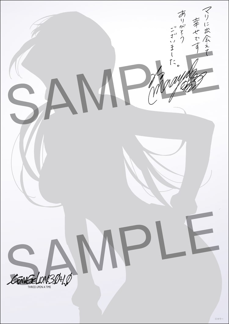 「シン・エヴァンゲリオン劇場版」の“最後”の入場者プレゼントとして、6月26日よりA4サイズのキャストサイン入りミニポスター「真希波・マリ・イラストリアス」バージョンおよび「渚カヲル」バージョンが、全国で合計100万人にランダム配布される。