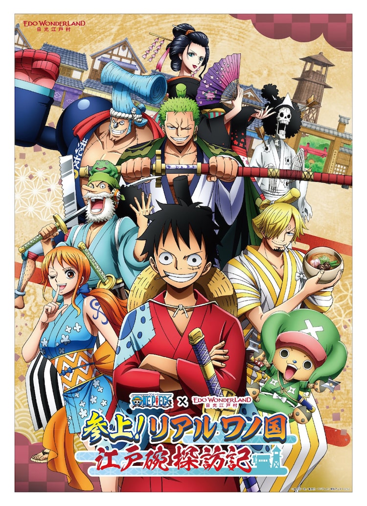 尾田栄一郎原作によるアニメ「ONE PIECE」と江戸時代を再現した栃木の歴史テーマパーク・江戸ワンダーランド日光江戸村がコラボレート。「ワンピース×江戸ワンダーランド日光江戸村 参上!リアルワノ国 江戸碗探訪記」と銘打ったイベントが、7月24日から10月31日まで開催される。