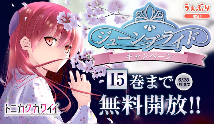畑健二郎「トニカクカワイイ」最新16巻の発売を記念し、サンデーうぇぶりでは本日6月22日から28日までの期間限定で、1~15巻を無料公開している。