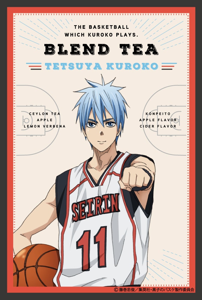 藤巻忠俊原作によるアニメ「黒子のバスケ」のキャラクターをイメージしたブレンドティーが、東京・銀座に本店を構えるティーサロン・銀色猫喫茶室より発売される。