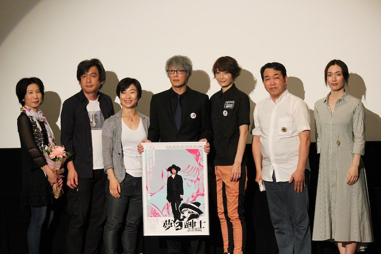 原作とは異なる要素が盛り込まれた今回の映画。海上監督は「私が中学2年生のときに『夢幻紳士』の、まさに今回(映画)のエピソードを初めて読みまして。夢幻さんが(三島)那由子を助けたのか助けなかったのか。感動したんだけれども、それがモヤモヤと何十年も残っていた」と言い、「描かれていない行間を映画として完結させてみたかった」という思いから、二十歳の頃より高橋にファンレターを送っていたことを明かす。そして映画化の許可をもらい、「いろんなことがあってだいぶ歳は取りましたけれども、映画を作りました」と今日までの日々を振り返った。続けて「(原作から)キャラクターを増やし、女性の部分の描写を増やしました。時代感を出すことも大事ですけれども、『どういった人間がこの探偵を好きになるのか』。それが私が13歳の頃から追い求めてきたテーマ」と作品に込めた思いを語り、「好きなものを突き詰めて映画が出来上がったので、ありがとうございますとしか言えないです」と感謝を述べた。
