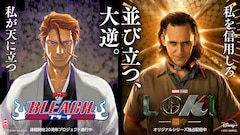 久保が描き下ろしたのは、「BLEACH」藍染惣右介のイラスト。尸魂界の中枢・瀞霊廷の守護を担う護廷十三隊の五番隊隊長として登場した藍染は、裏で長年にわたり暗躍していたことが判明し、周囲を裏切るという役どころだ。お目見えしたビジュアルでは、ロキとともに不敵な笑みを浮かべた姿が描かれた。