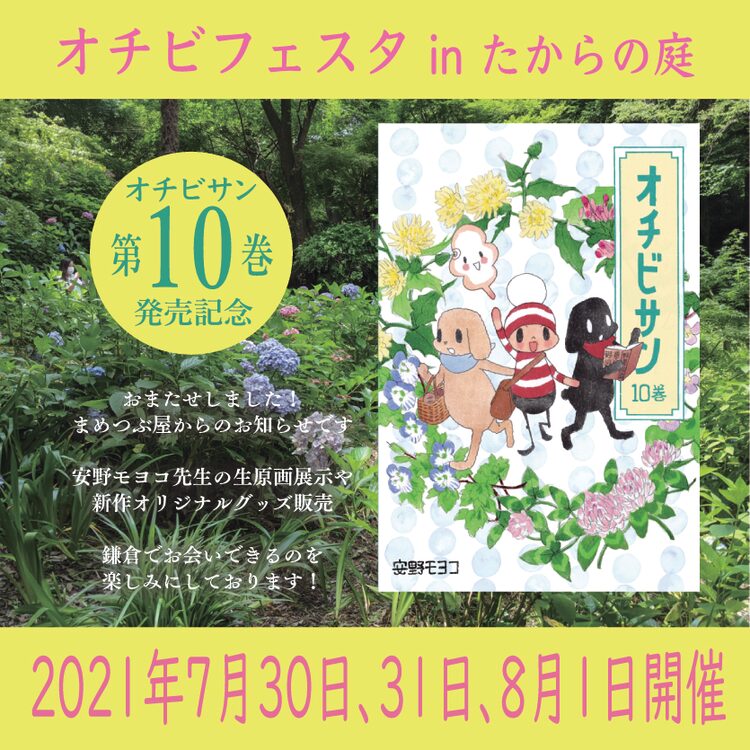 今回で3回目となる同イベントでは「オチビサン」10巻から初展示となる着彩生原画が公開されるほか、スタジオカラー制作の「オチビサン短編ムービー」の上映を実施。さらに安野のサイン入り単行本、「オチビサン」グッズを扱うオンラインショップ・まめつぶ屋のグッズや、たからの庭とのコラボ限定グッズも販売される。