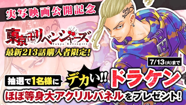 「東リベ」ドラケンのほぼ等身大アクリルパネルが当たるプレゼント企画がマガポケで