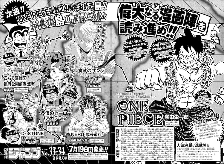 7月19日発売の週刊少年ジャンプ33・34合併号(集英社)に、秋本治「こちら葛飾区亀有公園前派出所」の新作読み切りがセンターカラー26ページで掲載される。