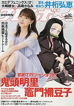 吾峠呼世晴原作によるアニメ「鬼滅の刃」の竈門禰豆子と、禰豆子役を演じる鬼頭明里が、本日7月12日発売の週刊プレイボーイNo.30(集英社)の表紙を飾った。
