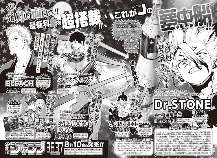 これは「BLEACH」が連載開始から20周年を迎えることを記念したもの。本日8月2日に発売された週刊少年ジャンプ35号の予告ページには「ある儀式のため尸魂界(ソウルソサエティ)に招かれた一護だが!?」という告知文とともに、「BLEACH」のカットが掲載された。36・37合併号では、2021年冬に開催が予定されている原画展「BLEACH展」や、久保の公式ファンクラブ「Klub Outside」など、「BLEACH」20周年企画の最新情報の告知も行われる。