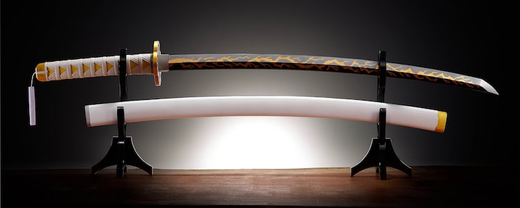 「PROPLICA 日輪刀(我妻善逸)」の全長は約880mm。重厚な金属の質感や刀身に走る雷の模様などが、細部まで再現されている。また「禰豆子ちゃあん!!!」「雷の呼吸 壱ノ型 霹靂一閃」といった善逸のセリフや、善逸の師匠の「いいんだ善逸 お前はそれでいい 一つできれば万々歳だ 一つの事しかできないならそれを極め抜け 極限の極限まで磨け」といったセリフのほか、効果音・BGMなど60種以上のサウンドを収録。鞘も付属し、マグネットセンサーを使った「抜刀ギミック」により善逸の“霹靂一閃”が再現できる。このほかの付属品として収録音声リストなどを掲載したブックレットや、日輪刀と鞘を飾れる台座も用意された。