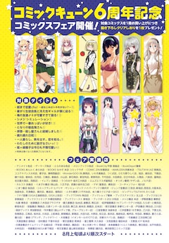 月刊コミックキューン(KADOKAWA)が、8月27日発売の10月号で創刊6周年を迎える。これを記念して、全国の一部書店にて「コミックキューン6周年記念 コミックスフェア」の開催が決定した。