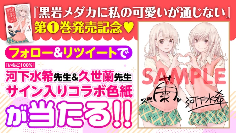 久世蘭「黒岩メダカに私の可愛いが通じない」1巻が本日8月17日に発売。河下水希が応援コメントを寄せた。
