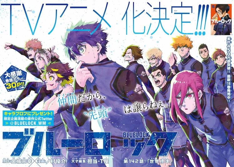 金城宗幸原作によるノ村優介「ブルーロック」のアニメ化決定を記念した企画が、本日8月18日発売の週刊少年マガジン38号(講談社)で実施されている。