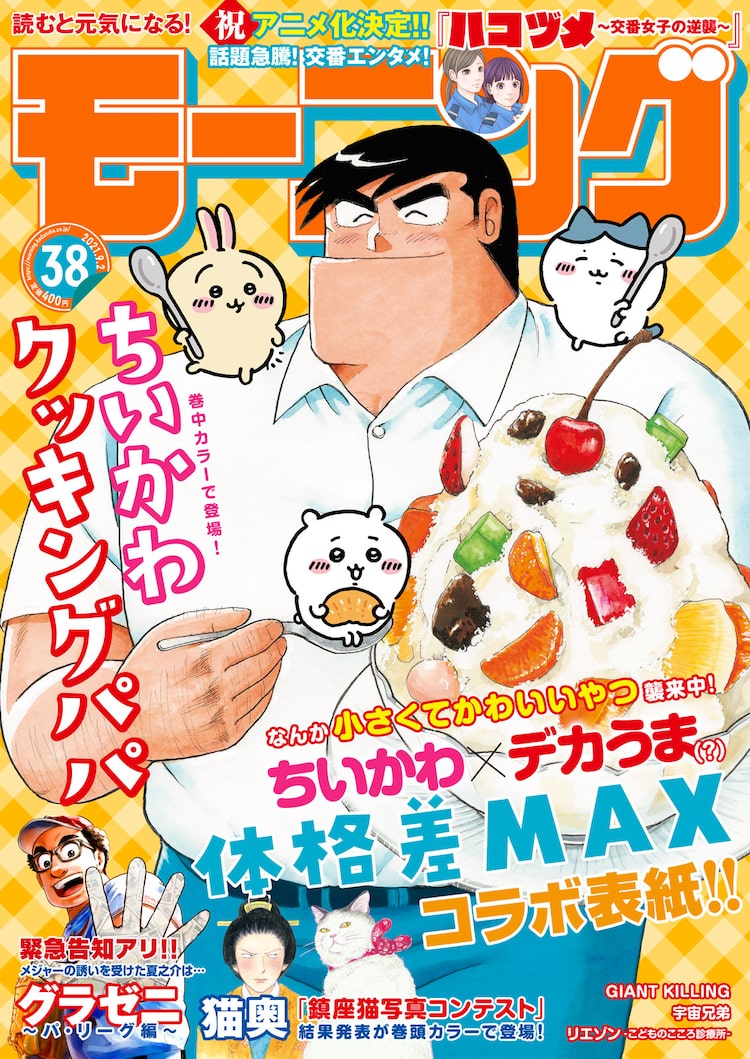 うえやまとち「クッキングパパ」とナガノ「ちいかわ」のコラボイラストが、本日8月19日発売のモーニング38号(講談社)の表紙を飾った。