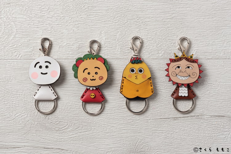 各キャラクターの姿が、カラフルな牛革を使って象られたこのキーホルダー。いずれもハンドステッチが施され、温もりのある風合いに仕上げられた。取り外しに便利なナスカンが付いており、バッグチャームやラゲージタグとしても使うことができる。