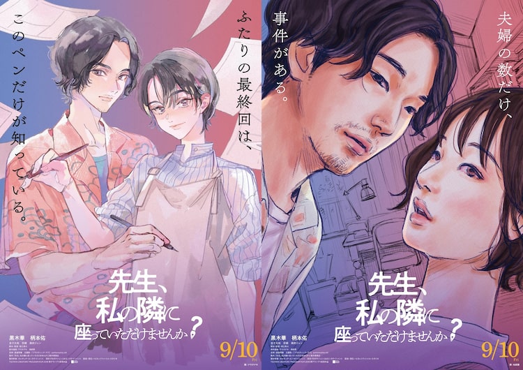 実写映画「先生、私の隣に座っていただけませんか?」より、劇中マンガを手がけたアラタアキ、鳥飼茜によるポスタービジュアルが公開された。