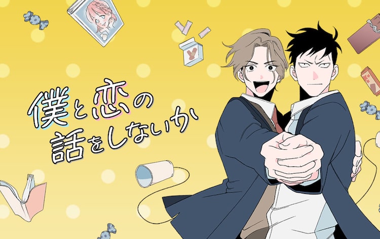 「僕と恋の話をしないか」は眉目秀麗・頭脳明晰でありながら「老若男女の恋心を弄ぶクズ男」という噂の高校生1年生・ヤナこと谷奈仁と、ヤナの同級生で最凶最悪の不良と恐れられている男子・メツキこと目月和を描くBLコメディ。噂とは違い実際にはピュアなヤナは、入学式の日に困っていたところを助けてくれたメツキに一目惚れする。それ以来、ヤナはメツキに猛アタックするようになり……。またcomicoでは本日8月21日より2週間、キャンペーンを実施中。「僕と恋の話をしないか」の全話パックが2割引の価格で購入できる。