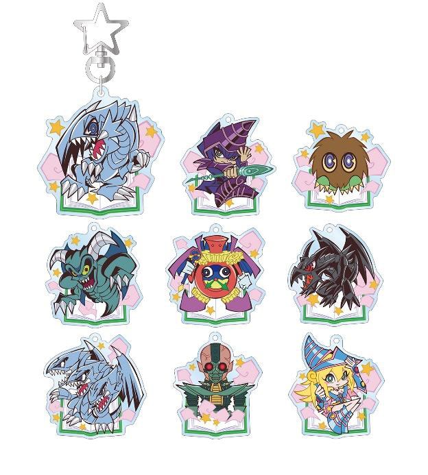 それぞれの商品には、トゥーンモンスターになった各モンスターをイメージして描かれたデフォルメイラストを使用。キーホルダーは青眼の白龍、ブラック・マジシャン、クリボー、デーモンの召喚、時の魔術師、真紅眼の黒竜、青眼の究極竜、人造人間-サイコ・ショッカー、ブラック・マジシャン・ガールをデザインした全9種。そしてパスケースは青眼の白龍、ブラック・マジシャン、ブラック・マジシャン・ガールをデザインした3種が揃えられている。