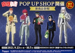 ポップアップストアでは幽助、桑原、蔵馬、飛影、妖狐蔵馬がタキシードに身を包み、花束を手にした描き下ろしイラストを用意。会場で同イラストを使った新商品の販売や特典カードの配布を行うほか、等身大パネルを展示する。なおポップアップストアの商品は、MEDICOS ONLINE SHOPで事後通販される予定。通販で購入した商品にも特典カードが付属する。