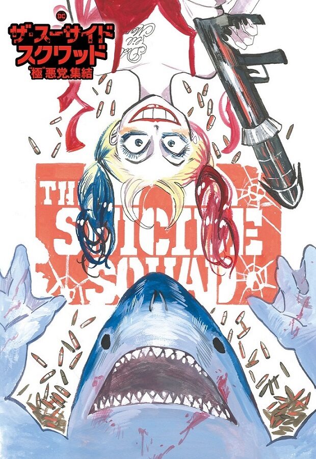 現在公開中の映画「ザ・スーサイド・スクワッド “極”悪党、集結」は、全員終身刑の“クソやばい”悪党14人が政府に緊急招集されたことから始まるギャグ満載のサバイバルアクション。悪党たちは10年の減刑と引き換えに、人類の脅威である怪獣プロジェクトに立ち向かっていく。板垣のイラストには、ロケットランチャーを手に不敵な笑みを見せるハーレイ・クインと、彼女の下で大きな口を開ける、食べること以外には興味のないキングシャークが描かれた。