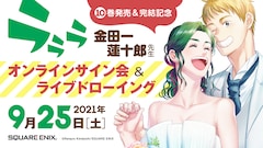 金田一蓮十郎「ラララ」の完結を記念し、オンラインサイン会とライブドローイングが最終10巻の発売日である9月25日に実施される。