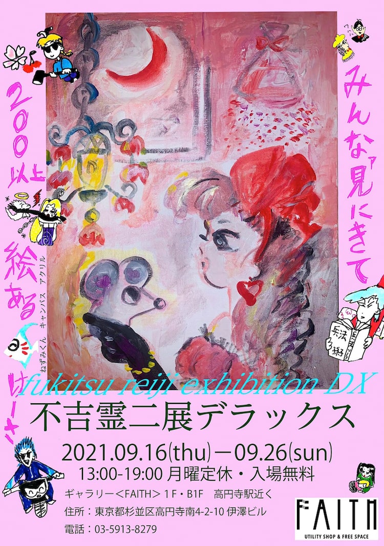 不吉霊二の初個展「不吉霊二展 デラックス」が、9月16日から26日まで東京・高円寺FAITHで開催される。