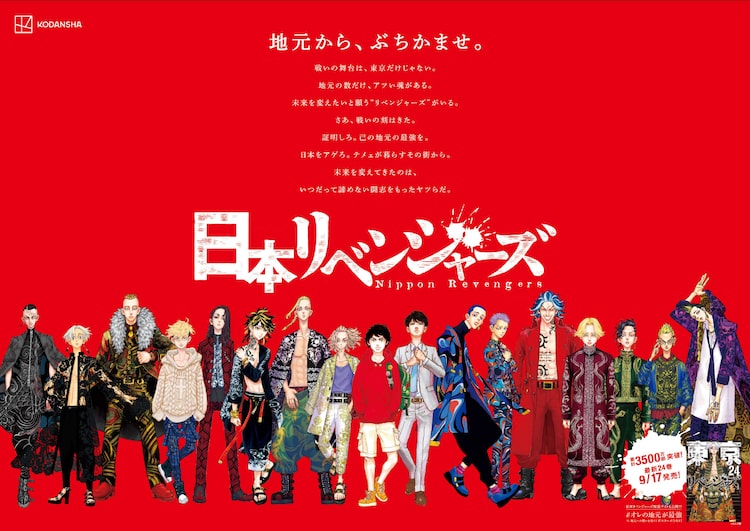 さらに「東京卍リベンジャーズ」最新24巻が発売される9月17日の朝日新聞朝刊に、「日本リベンジャーズ」の広告が掲載予定。また一部書店では「47都道府県リベンジャーズイラストカード」がランダムで配布される。