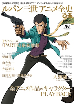 「ルパン三世アニメ全史ぴあ」はTVシリーズ、映画、オリジナルビデオなどさまざまな形態で展開されてきたアニメ「ルパン三世」シリーズの全作品を一挙に振り返る一冊。さらにルパン三世役の栗田貫一、銭形警部役の山寺宏一、次元大介役の大塚明夫が「ルパン三世」のこれまでとこれからを語る鼎談と、石川五ェ門役の浪川大輔と峰不二子役の沢城みゆきが、“ルパンファミリー”入りから10年を経て、これまでの心境の変化を明かす対談が掲載されている。